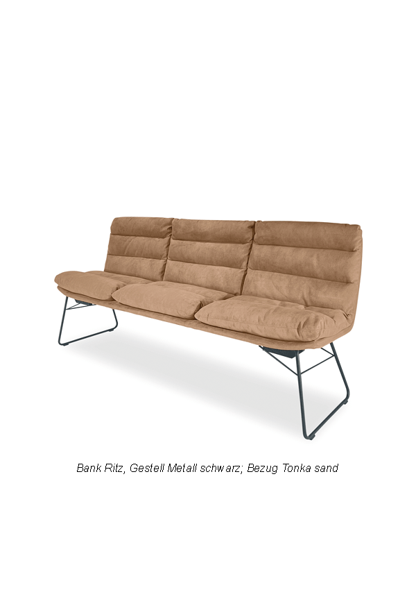 Aufgepolsterte Bank mit strapazierfähigem und pflegeleichtem Mikrofaser Bezug „Tonka“ (optisch ähnlich Alcantara) Ausgefallene Optik mit hohem Sitzkomfort.