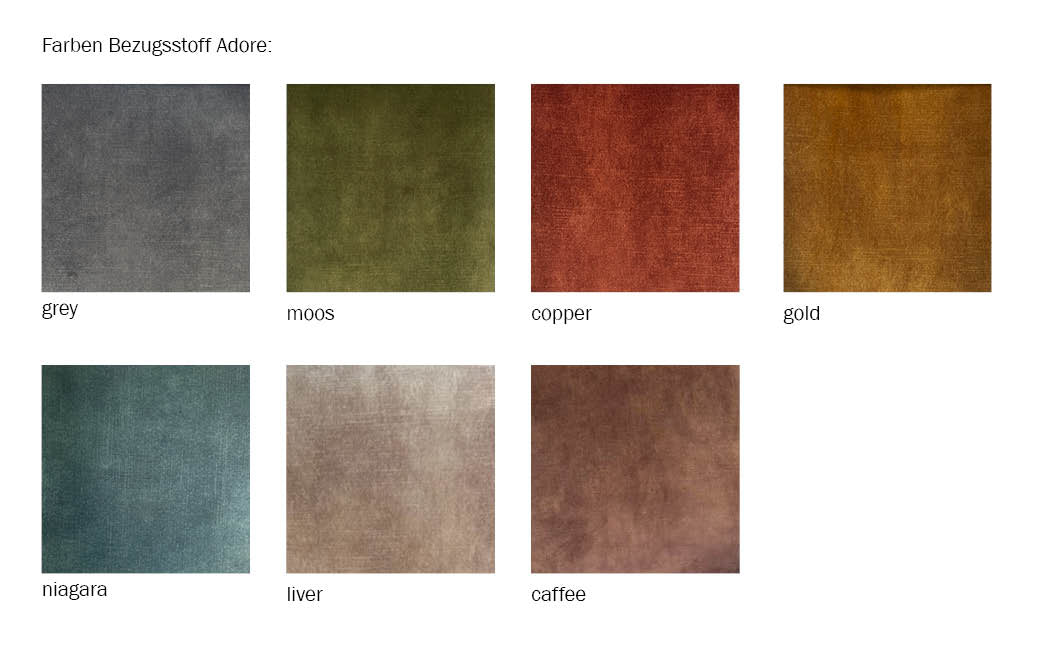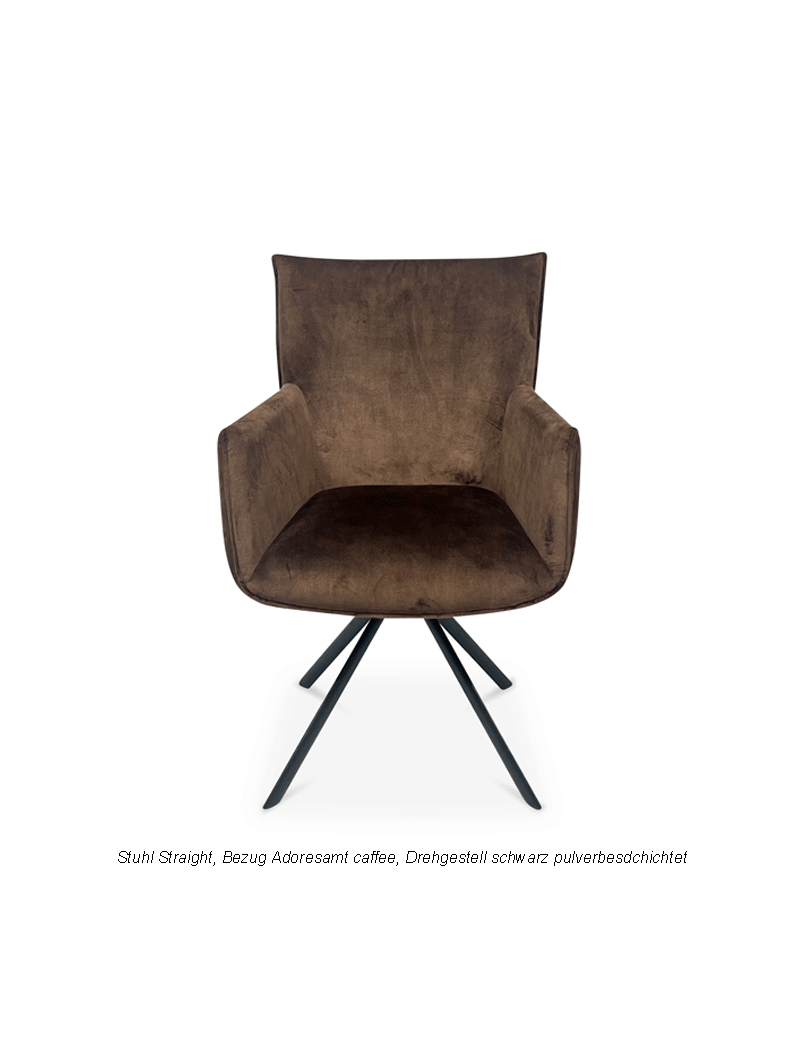 Geradliniger Drehstuhl mit Armlehnen. Elegant und zeitloses Design in unempfindlichem Bezugstoff ADORESAMT. In 7 Farben erhältlich.