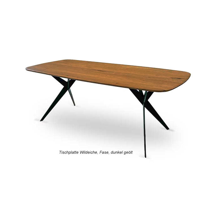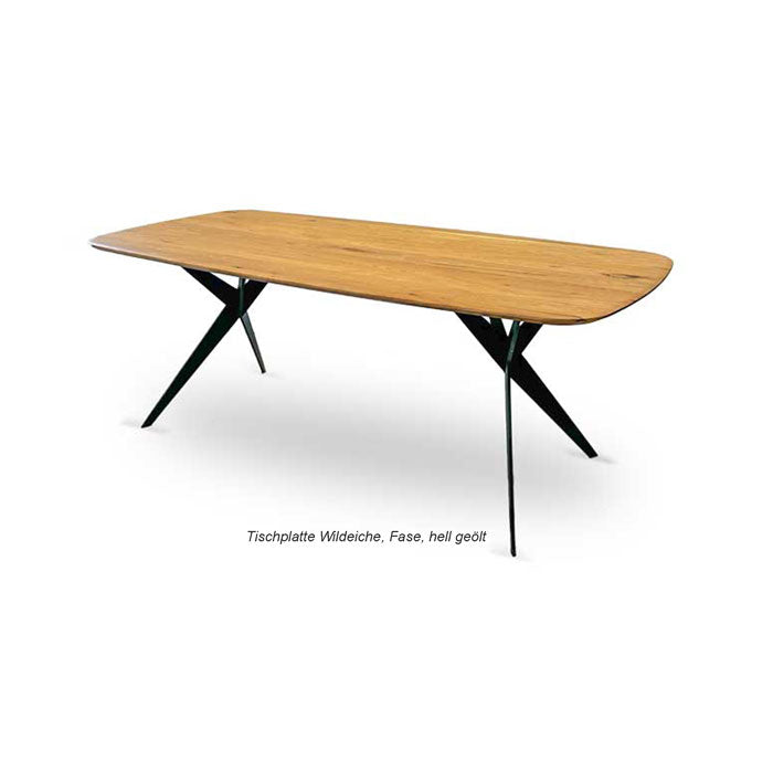 Der Massivholztisch „Schiffsform“ mit Fase und oben abfallender Tischplatte. Mit diesem Tisch haben Sie die Wahl zwischen zwei Plattenbreiten und unterschiedlichen Längen. Die in zwei verschiedenen Farbnuancen geölte Oberfläche sorgt für beste Strapazierfähigkeit und eine lange Lebensdauer. Erhältlich in hell oder dunkel.